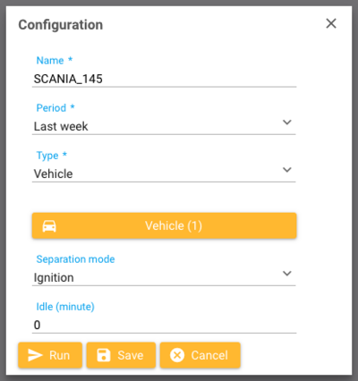 - The query type (the vehicle type takes vehicles into account, the person type considers vehicles driven by a particular driver)
