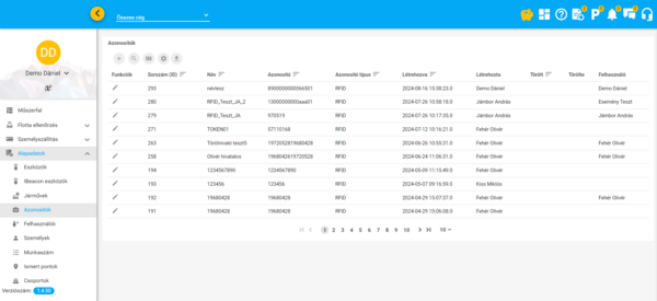 Az Azonosítók funkció azért jött létre, hogy a jármű azonosításhoz használt biléták elektronikus azonosítói számon legyenek tartva és kezelhetőek legyenek a felhasználók számára is.