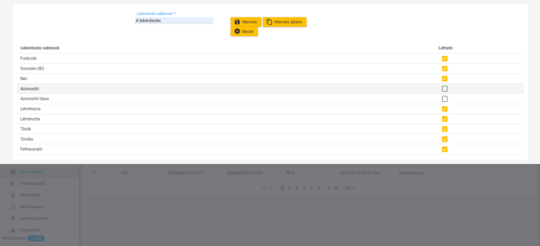A keresés gomb melletti oszlopok gomb segítségével létrehozhatunk lekérdezés sablonokat, amiket később egy gombnyomással futtatni tudunk.