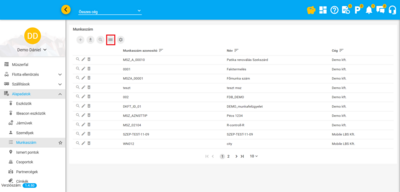 A listában balról jobbra haladva elsőként a jármű adatok megtekintésére szolgáló nagyító ikonnal jelölt, majd a módosítására szolgáló, a ceruza ikonnal jelölt gombot, végül a szemetes ikonnal jelölt törlés gombot találja a felhasználó.