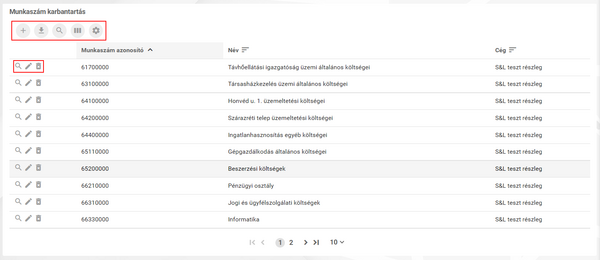 Ez a modul nyújt lehetőséget munkaszámok létrehozására, a munkaszámok adatainak és összerendeléseik módosítására.