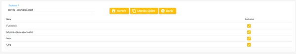 Az oszlop beállításokat el is menthetjük különböző elnevezésű profilokba, ezek a lekérdezések később előhívhatók és használatukkal gyorsan beállítható a munkának leginkább megfelelő oszlop elrendezés