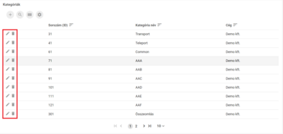 A baloldalt található ceruza ikonnal tudjuk módosítani, mellette a szemetesláda ikonnal törölni a kategóriát.