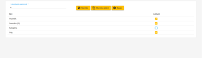 Listában megjelenő oszlopok