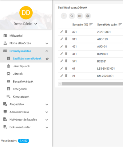 A szállítási szerződések adatainak rögzítése, módosítása, törlése