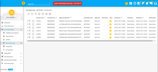 - *engedélyezett beszállókártyák (azonosító címkék) száma: korlátozni lehet hogy egy adott szerződés keretében egy partnercég számára mekkora mennyiségű beszállókártya lehet forgalomban. Egy szerződéshez kapcsolódóan a beszállókártyák maximális száma 1 millió lehet.