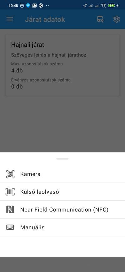 A járat adatsor előtti, számozott felsorolást jelző ikonra kattintva egy felülről beúszó ablakon jelennek meg fordított időrendben a járaton történt azonosítási kísérletek.