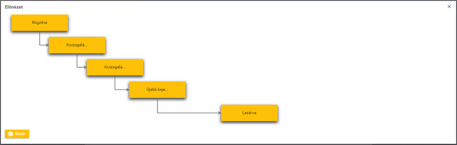 Az előnézet funkció a munkafolyamat elemeinek hierarchiáját mutatja meg egy ábrán a felhasználó számára oly módon hogy azonnal érthető és átlátható legyen a munkafolyamat.