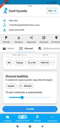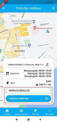 Amennyiben a parkolózónában, vagy annak közelében tartózkodó jármű adatlapjáról indítod a parkolást, a folyamat annyiban különbözik a fent leírtaktól, hogy nem kell kiválasztanod a járművet vagy a zónát, ezeket az információkat ebben az esetben a rendszer automatikusan kitölti.