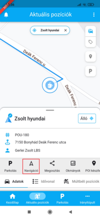 - a parkolózónában, vagy annak közelében álló jármű adatlapján, a P betűre bökve.