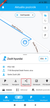 A Megosztás gombra koppintva a mobileszközön rendelkezésre álló csatornákon megoszthatod az eszköz pozícióját.