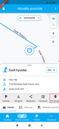 A POI készítés gombra koppintva pedig az adott eszköz tartózkodási helyére szerkeszthetünk ismert pontot.