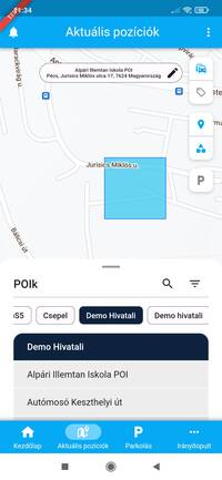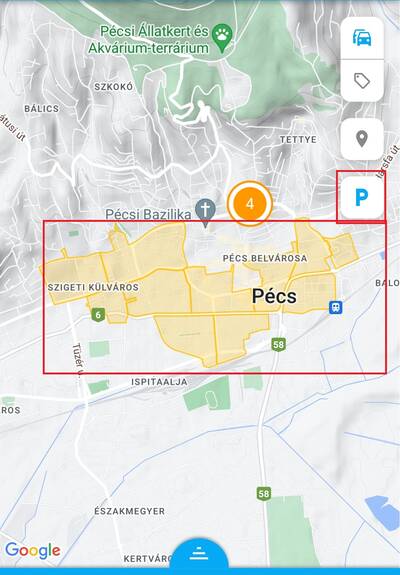 - és amennyiben a parkolózónák megjelenítése be van kapcsolva, a parkolás indítását lehetővé tévő P gombot találod.