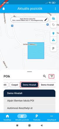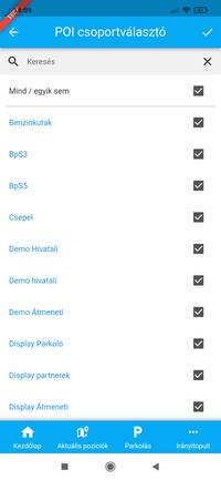 A listában szereplő POI-k halmazát a POI csoportok kiválasztásával szűkítheted. A POI csoportokat a lista fölött található POI fejléc jobb szélén elhelyezett három vízszintes vonalra kattintva megjelenő szűrőben választhatod ki.
