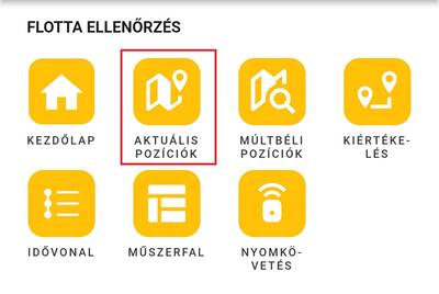 Az Aktuális pozíciók felületén az előfizetésednek megfelelő (OSM vagy Google) térképen nyomon követheted eszközeid mozgását. Az álló helyzetben lévő eszközöket kávéscsészével, a mozgó eszközöket iránymutató nyíl formájában, vagy a webes felületen beállított ikonnal és színnel jelenítjük meg számodra.