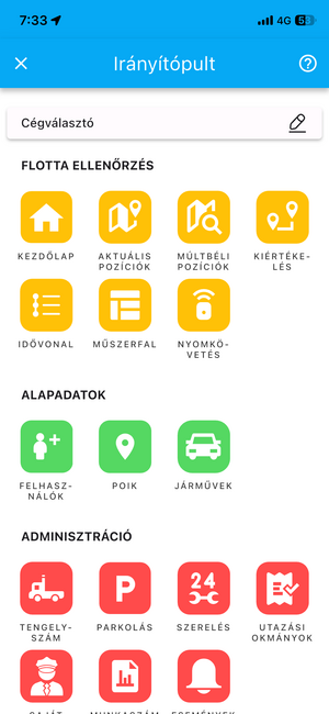 Amennyiben a felhasználód több előfizetőhöz hozzá van rendelve, a cégválasztó használatával állíthatod be, hogy melyik előfizető adataira szeretnéd szűkíteni az alkalmazás fókuszát.