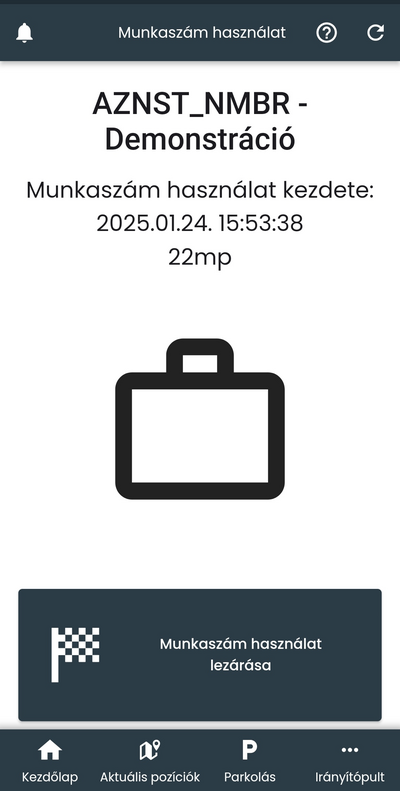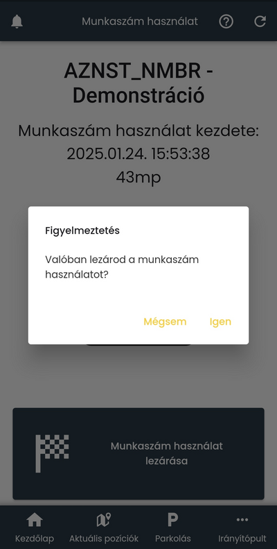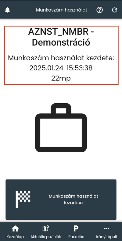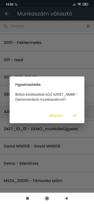 majd az OK gombra koppintva a rendszer bejegyzi a munkaszám használatot.
