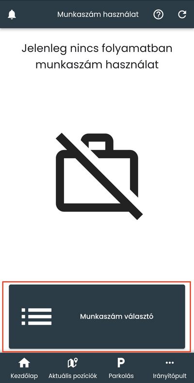 Amennyiben nem rendelkezel nyitott munkaszám használattal, a képernyő alsó hányadában elhelyezett Munkaszám választó gombra koppintva nyithatod meg a webes felületen már korábban létrehozott munkaszámok listáját.