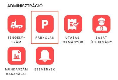 A Parkolás funkció megnyitható az irányítópultból, illetve a navigációs sávból is.