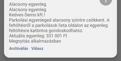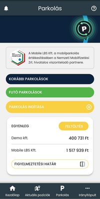A mobilapplikációban lehetőséged van parkolási egyenleged feltöltésére, parkoláshoz kapcsolódó figyelmeztetési határok beállítására.