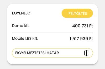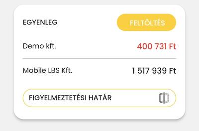 Az egyenleg oldalon láthatod cégeid aktuális egyenlegét, tudod feltölteni azt.