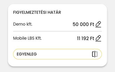 - Egyenleg megtekintése, feltöltése, figyelmeztetés beállítása
