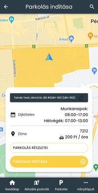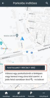 A Parkolás indítása gombra kattintva a térképes felület nyílik meg és annak a járműnek a pozícióját látod, amelyhez vagy