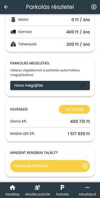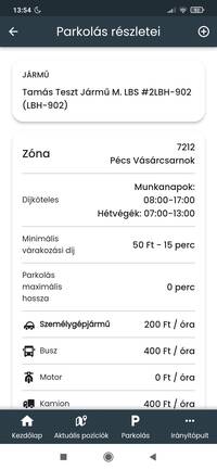 Az ablakon található „Parkolás részletei” gombra kattintva megjelennek további információk a parkolással kapcsolatban.