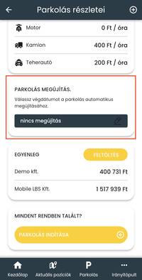 Itt még van lehetőséged feltölteni az egyenleged vagy beállítani automatikus megújulást, amennyiben hosszabb időtávra szeretnél parkolni.