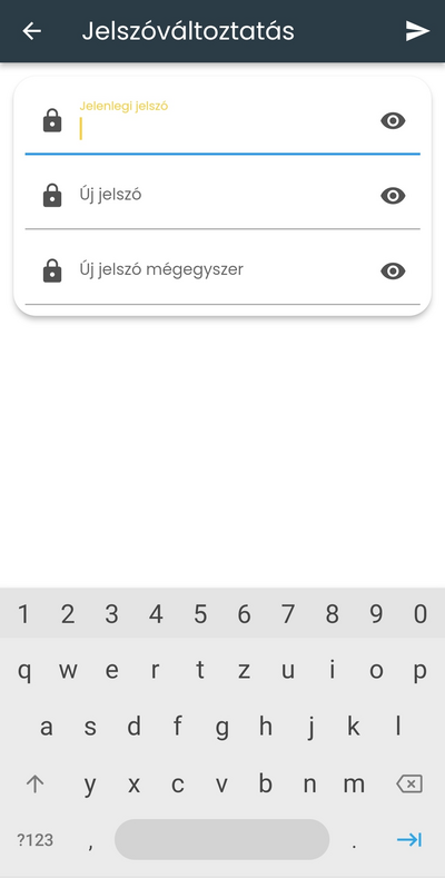 A változtatást az aktuális jelszavad beírása és az új jelszó megadását követően a jobb felső sarokban elhelyezett nyílra koppintva végezheted el.