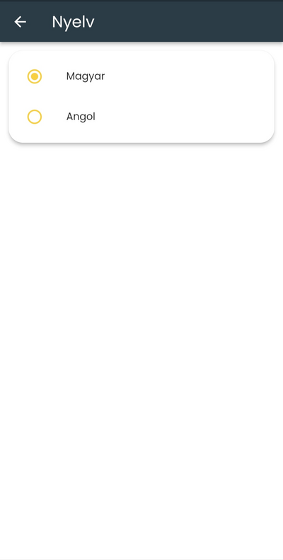 Itt állíthatod be azt, hogy milyen nyelven szeretnéd az alkalmazást használni, a magyar és az angol közül választva.